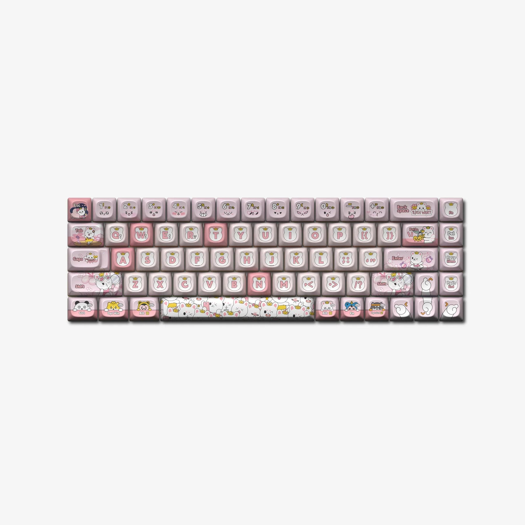 Celebrate the Year of the Rabbit with the adorable Bunny Lululu who comes from RICHWANT IP family. Lululu, adored by fans since her debut, infuses her best wishes for the new year into this delightful keyboard design. The set of keycaps features the charming image of Yuzu Rabbit, with rabbit silhouettes as a backdrop under bold pink letters, adding a touch of cuteness and style. Own this keyboard and embrace a life filled with blessings and joy, just as Lululu intended.