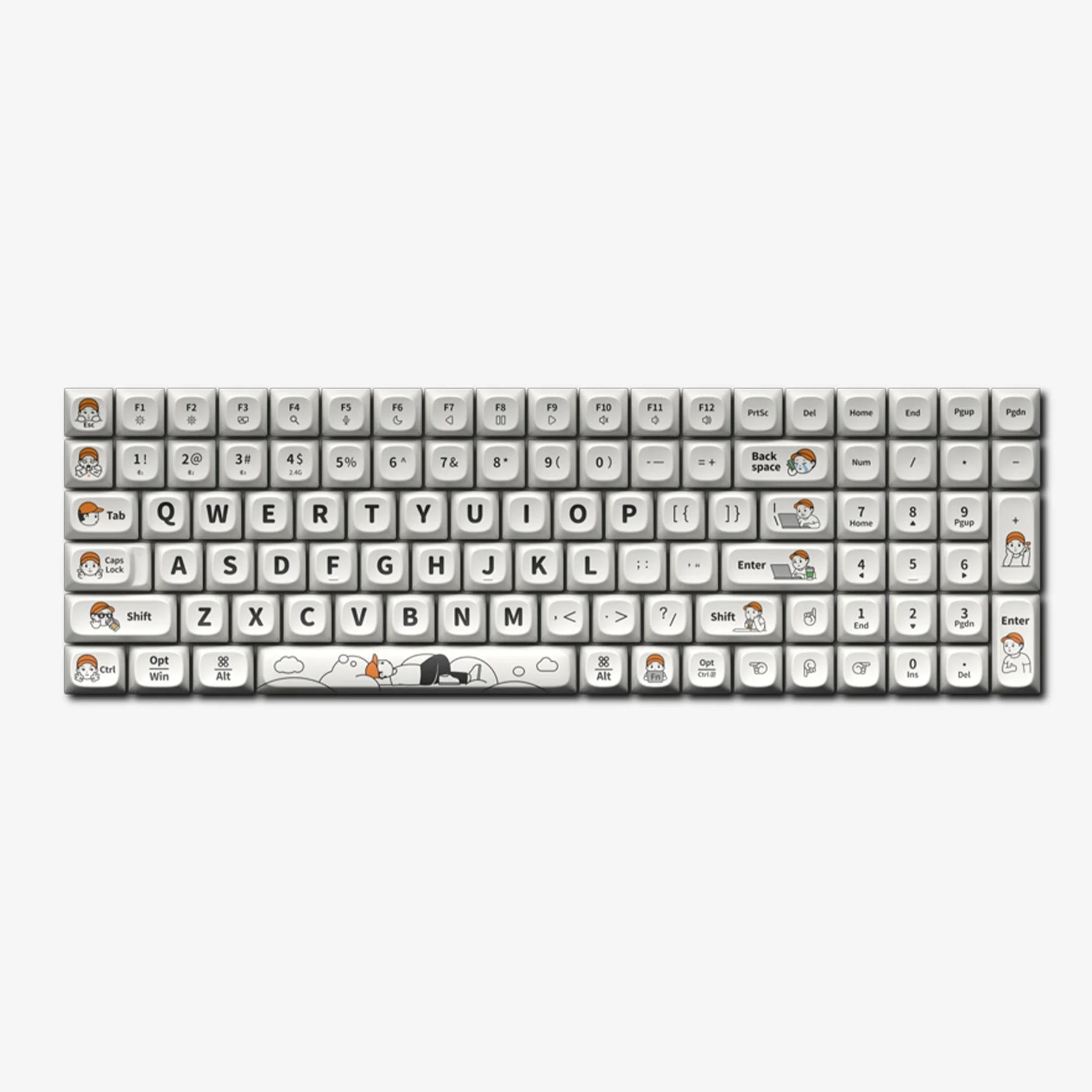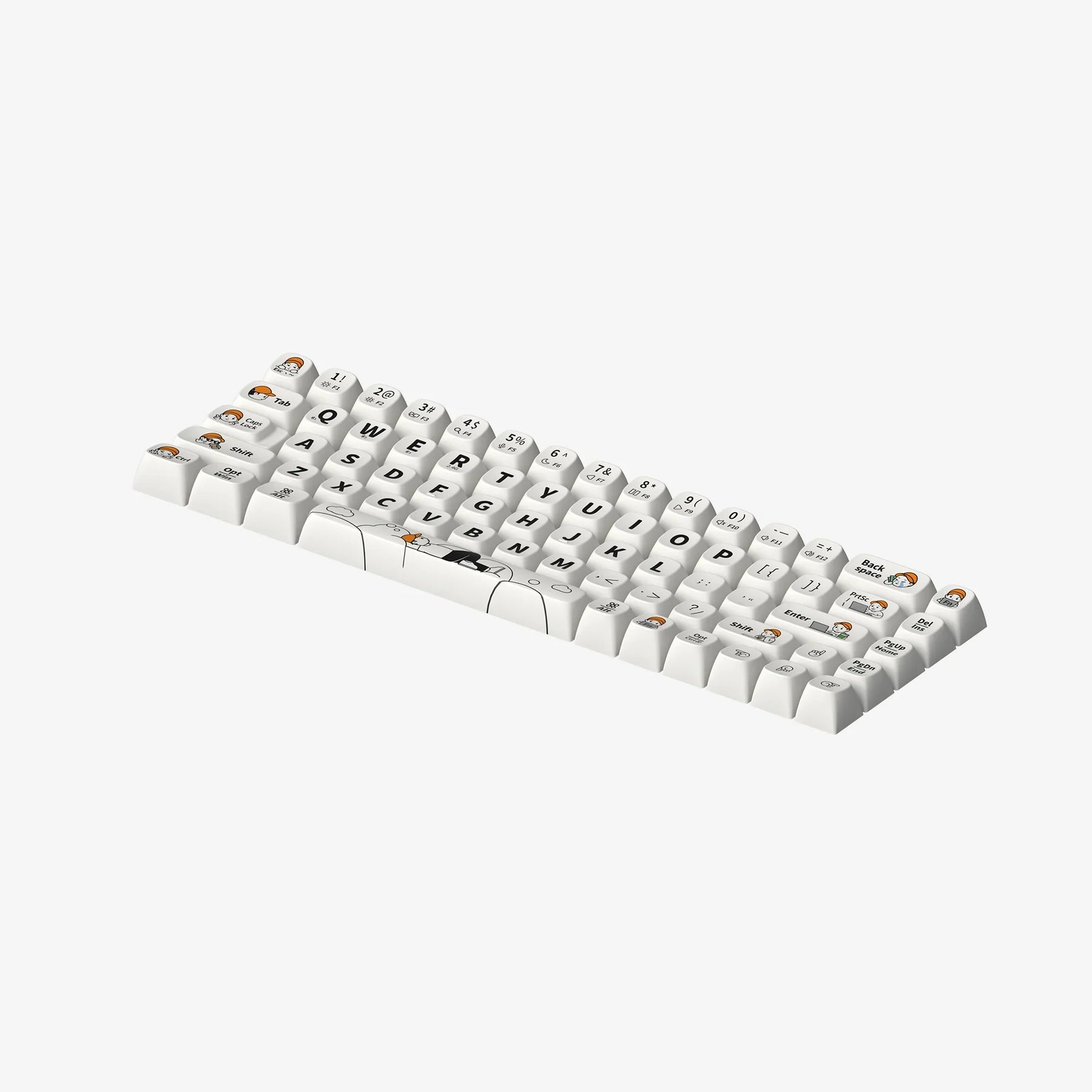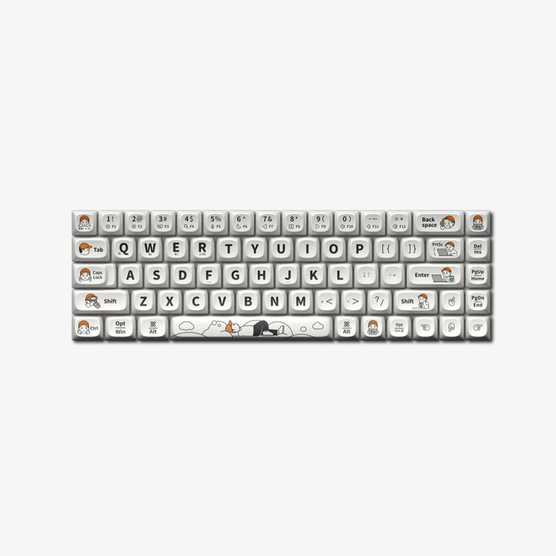 Meet Finer, affectionately known as the "Hat Boy," the charismatic icon of our Finerworld keycaps. With an exterior that projects cool detachment, Finer's true essence is his fervent passion for life. The set of keycaps celebrates Finer and his friends, encapsulating their emotional lives and aspirations. Each design is a tribute to their artistic spirit and quest for the delightful aspects of life.