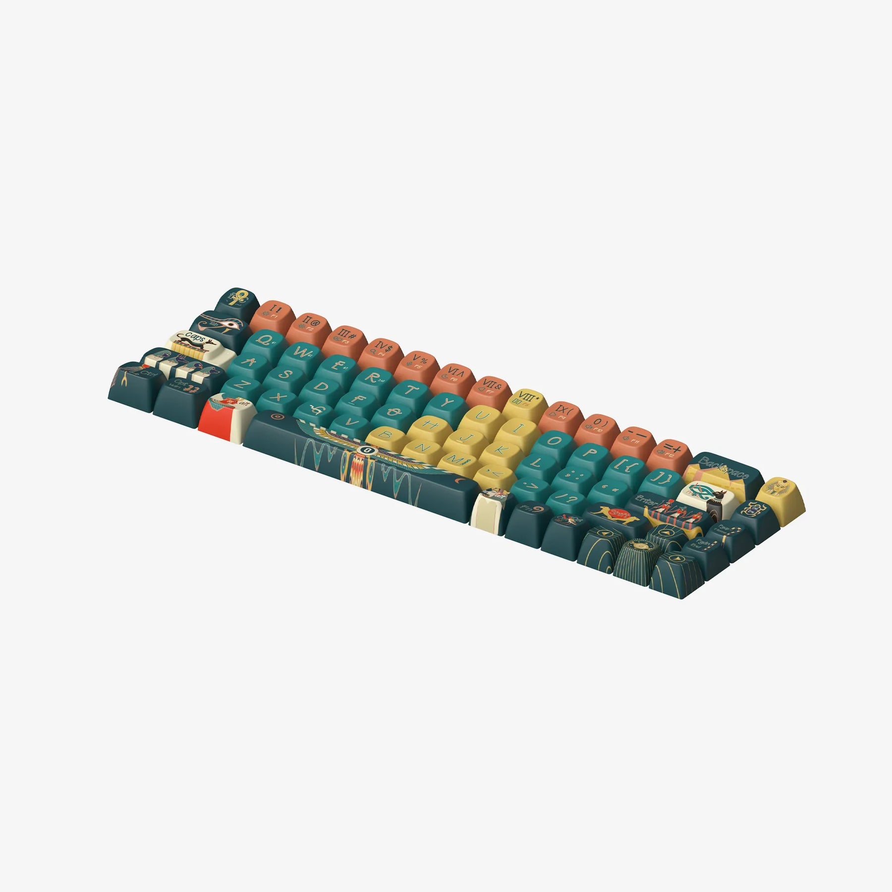 Explore the grandeur of ancient Egypt with our "Pharaoh" keycaps. Adorned with images of enigmatic pyramids and exquisite temple frescoes, the set of keycap is a tribute to the splendor of a civilization defined by its architectural and artistic achievements. These keycaps bring the essence of ancient Egyptian power and beauty right to your fingertips.