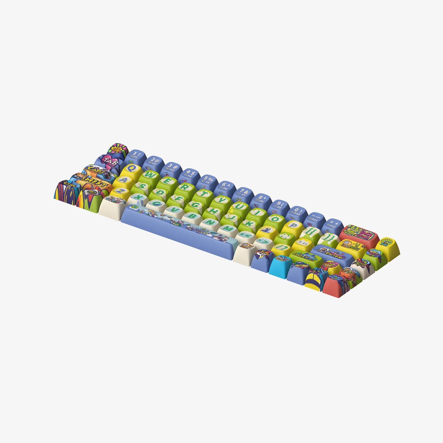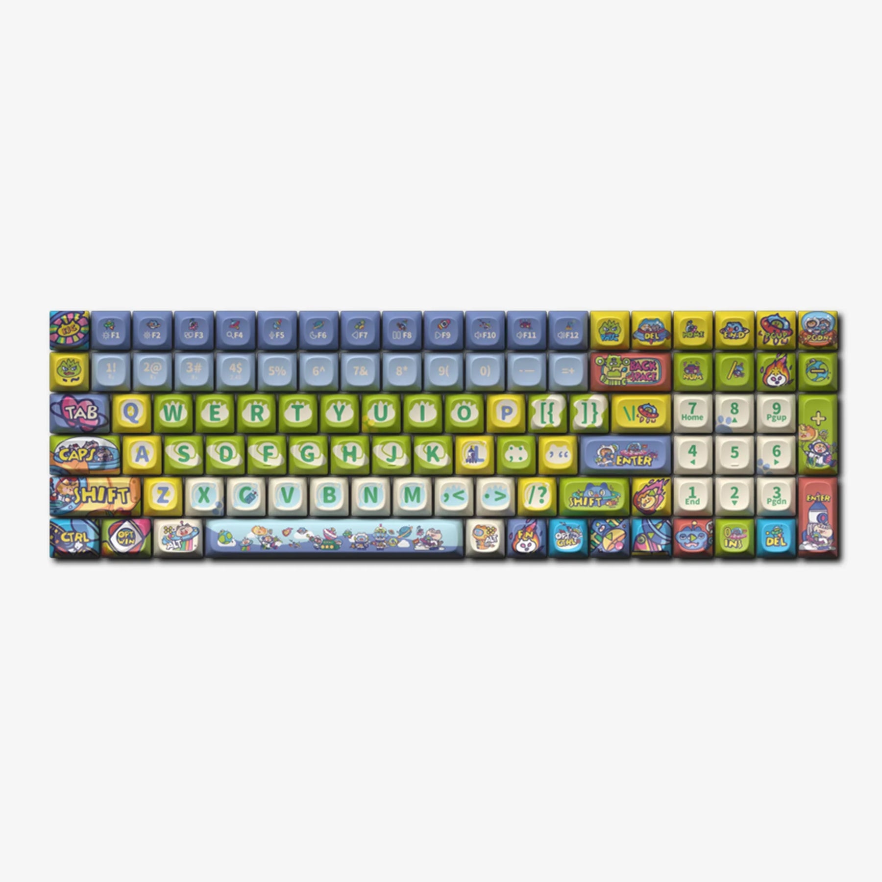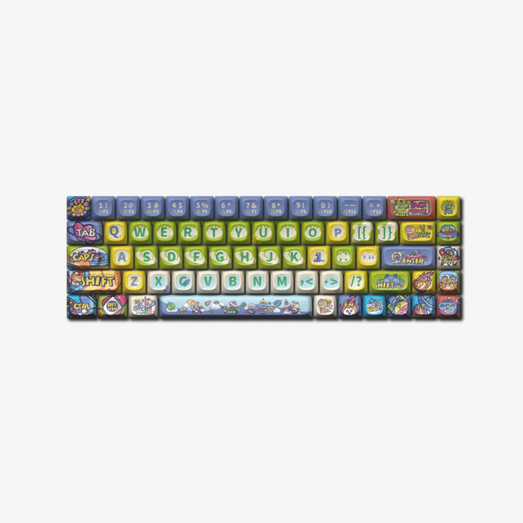 Embark on a cosmic adventure with our "Cat Planet Adventure" keycaps, where space-faring cats patrol their territories aboard starships. Featuring pilot cats, scientist cats, and loyal green cats, this set tells the tales of epic "Cat Star Wars" battles. The vibrant red, yellow, and green color scheme not only gives a high-tech feel but also adds liveliness and fun to your keyboard setup, inspiring every keystroke to be an interstellar journey.